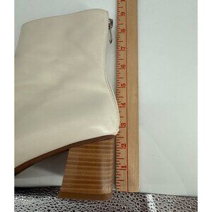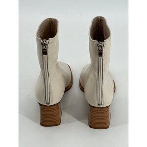 Ivory Leather Mid Block Heel Ankle Boots With Rear Zip Closure Womens Size 8.5