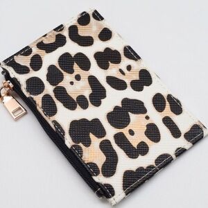 Superior quality leopard print Caleb zipper ouch card holder perfect in a crossbody bag or carried alone.