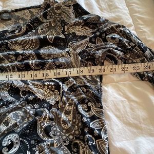 Black and grey paisley top with romantic fringe feature in the bottom.