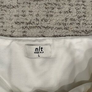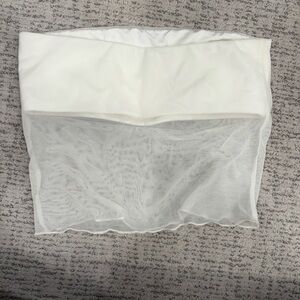 Ivory crop top features a mesh midriff and built in bra. Worn once for getting ready pictures for my wedding.