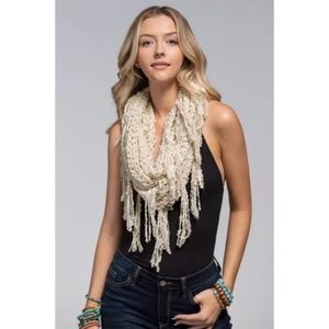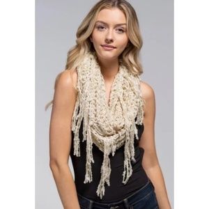Ivory Net Boucle Yarn Fringe Winter Fall Casual Women's Scarf