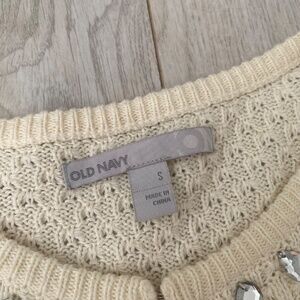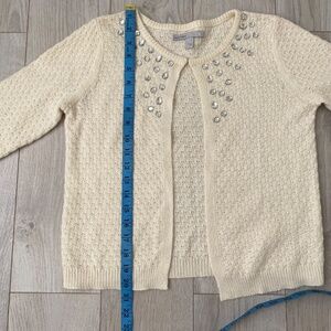 Ivory Open Front Cardigan Sweater with Embellished Rhinestone