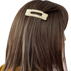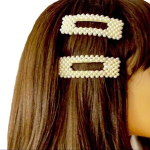 Hair Accessory! Beautiful ivory Pearl hair clips in square large snap clip in. Ivory Pearl Beaded Snap in Square Ivory Pearl beaded hair clips!
