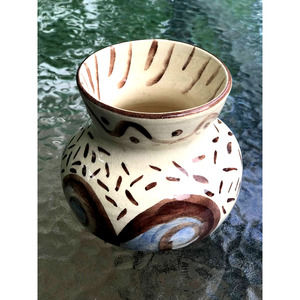 Ivory Pottery Vase with Blue & Brown Wave Pattern