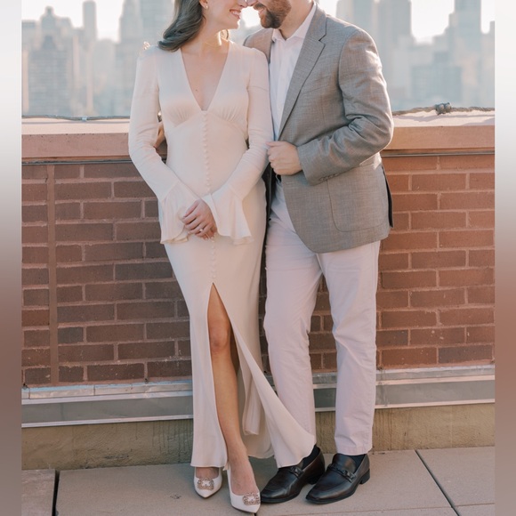 Worn once for engagement photos. Like new, like wear on right point of shoe and back near ankle. Only noticeable when holding it close to your face, not when wearing!