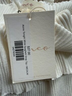 Soft cream ribbed knit cami with adjustable tie straps and fold over detail. Lightweight and breathable for everyday wear. Pairs easily with jeans or skirts. New with tags
