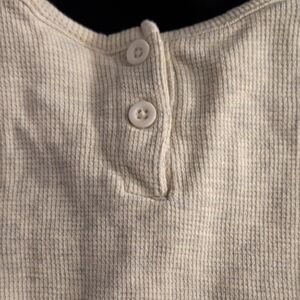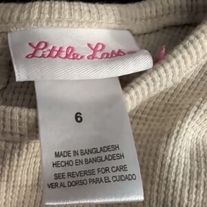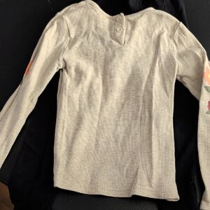 Ivory Ribbed Knit Top With Floral Design On Sleeves And Black Leggings Outfit. Soft and cozy. Perfect for layering. shirt is little last size 6 and the leggings are black from the place size 5/6