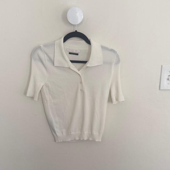 Chic cream button down shirt by Mango. Features a classic polo collar. Ideal for versatile styling. Italian Yarn. Size Small.
