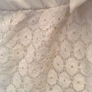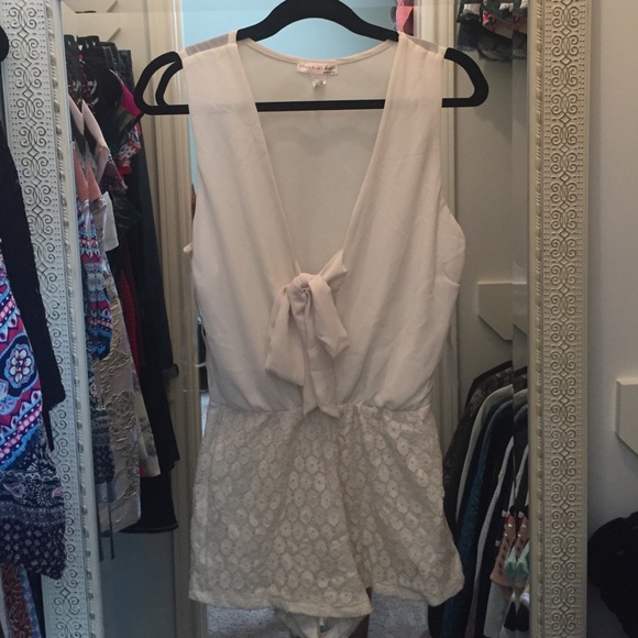 IvoryRomper. Chiffon material up top and lace material on the bottom. Low v-neck. Size Medium. Fits a small or a medium.