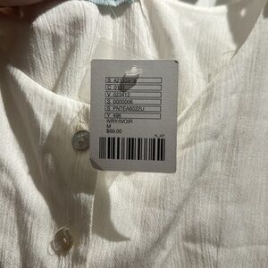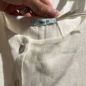 Never worn, relaxed fit, size small, shell buttons, linen, adjustable/tie straps