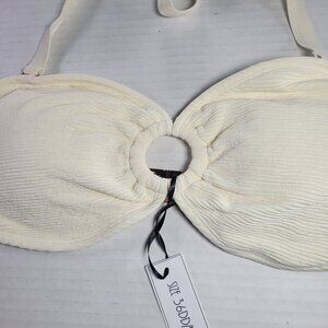 Ivory Rose Cream Textured Bandeau Halter Straps Bikini Top Size 36DD/E