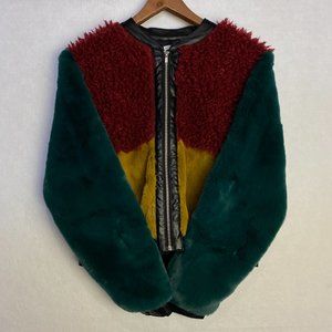 Ivory Rose Fleece Full Zip Short Jacket Long Sleeve Colorblock Maroon Yellow