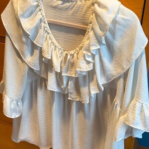 Chic blouse with layered ruffles. Soft fabric and elegant design. Perfect for versatile styling.