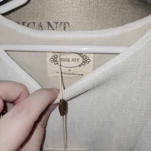 Elegant ivory dress with layered ruffle skirt and delicate flutter sleeves. Lightweight textured fabric offers soft drape and feminine movement. Defined waist creates a flattering silhouette. Perfect for weddings, parties, or special occasions.