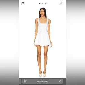 This cream mini dress by Lovers + Friends features a chic square neckline and a sleeveless design, perfect for a wedding or cocktail event.