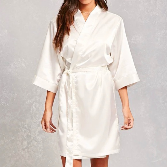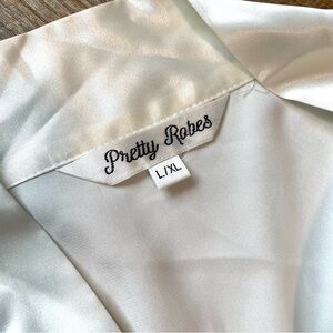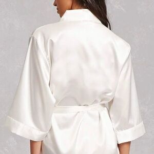 Like new! This ivory robe in a satin material is sleek and gorgeous! Ideal for lounging, a relaxing spa day, or even as a bridal robe for getting ready on your wedding day! Size L/XL.