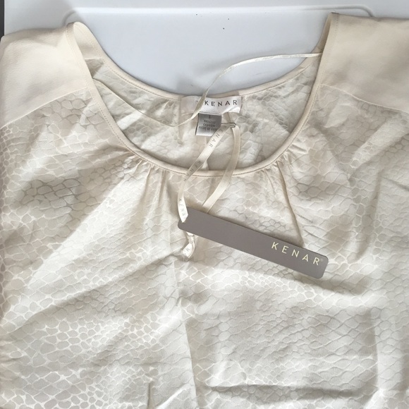 Ivory Scalloped Edge High Low Snake Skin Imprint, Size L, Short Sleeved