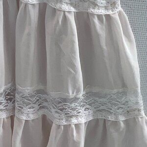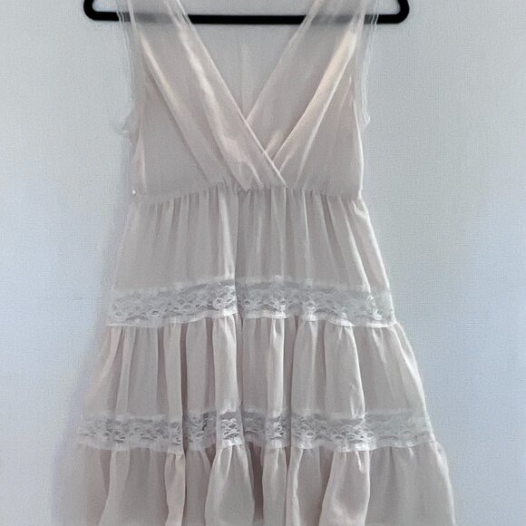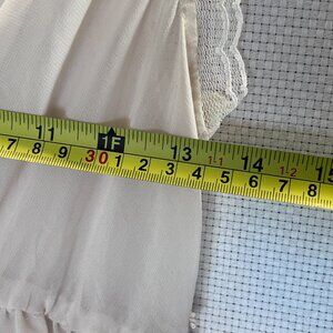 Ivory Sleeveless Babydoll Top Lace Trim Semi Sheer Tiered Ruffle Blouse Sz S/M