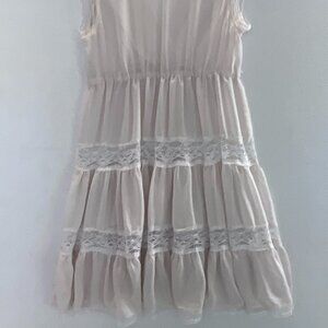 Ivory Sleeveless Babydoll Top Lace Trim Semi Sheer Tiered Ruffle Blouse Sz S/M Boho