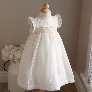 Ivory Smocked Dress & Bonnet Set Organza Special Occasion Portrait Boutique NWT