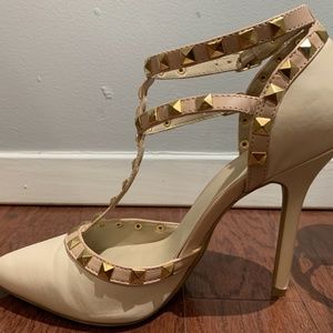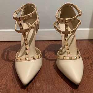 Ivory & Soft Pink Studded Pointed Toe Heel Size 8
