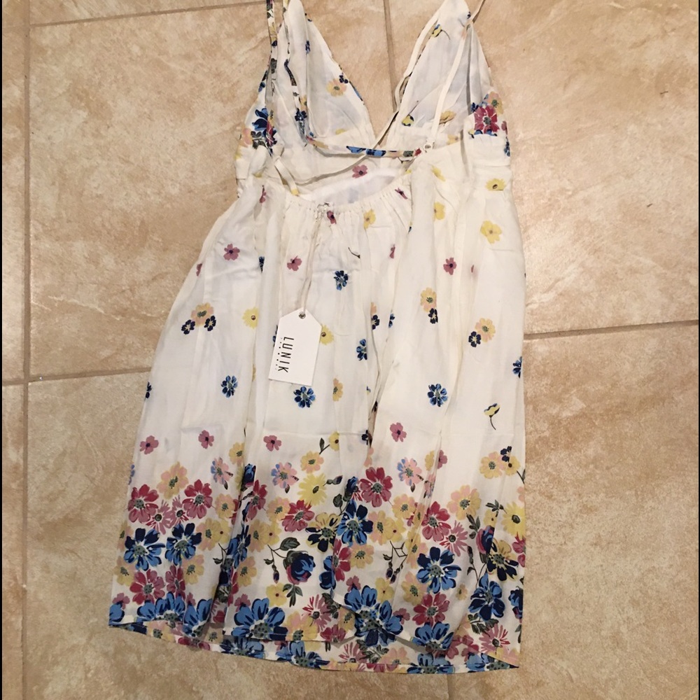 Floral dress Sleeveless low V neck strappy open back floral print sundress 2 SM, 2 MD, 2LG