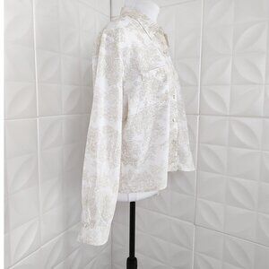 Ivory Toile Shirt Cotton Lightweight Shell Buttons J Jill Collar Crop Country XL