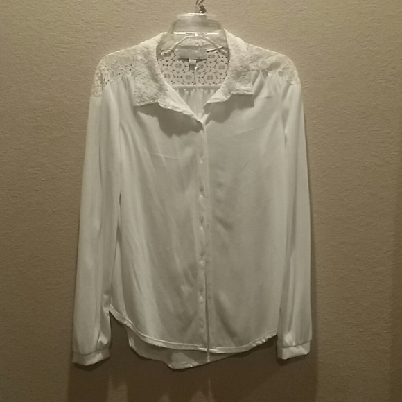 Nice top ivory with lacy insert along shoulder