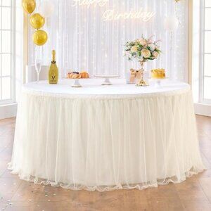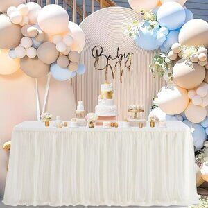 Ivory Tulle Table Skirt for 4/6ft Rectangle Round Tables