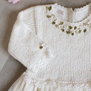Ivory Tulle and 100% Cotton Sweater Dress Size 2 Boutique Couture NWOT