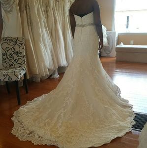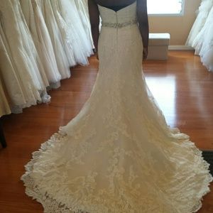 Strapless, Mermaid Trumpet style, lace with beading 36C- 38D with out needing to be altered and can fit a 26- 30 waist and 37-41 hip .... I wear a size 6 jeans in Old Navy, Aeropostale, 28 waist in True Religion and 36C bra in VS