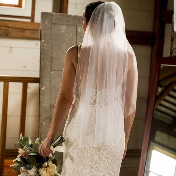 New handmade especially for you Soft Tulle wedding veil in Fingertip length (36 inches long) with raw edge. Clear plastic comb attached for a secure hold. Ivory and White available.