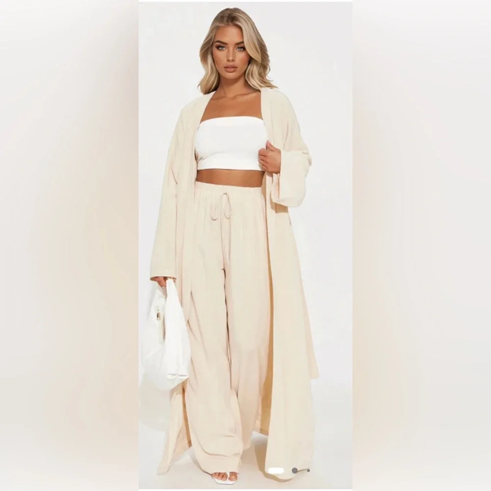 Ivory Wide-Leg Drawstring Pant and Robe Set