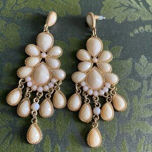 Ivory and Gold Chandelier Earrings