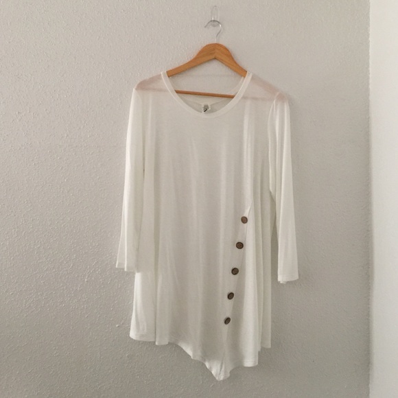 Brand new without tags assymetrical tunic with button detail. Available in sizes S-L please comment below with the size you want to buy and I will create a separate listing for you to purchase. Price is firm unless bundled. 🚫No Trades🚫