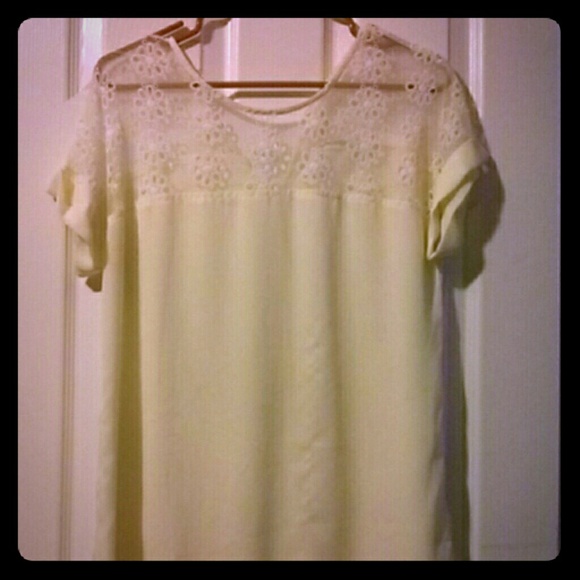 Sheer ivory blouse. Top has embroidered flowers.