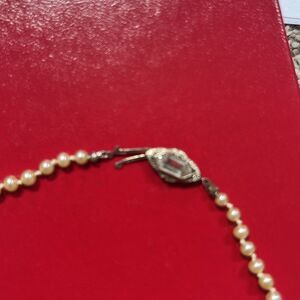 Vintage ivory pearls Beautiful gemstone clasp Signed Deltah 13” L