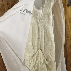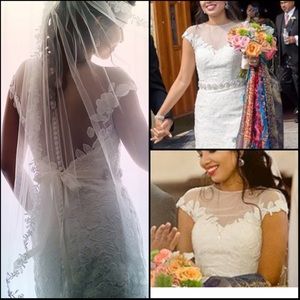 My wedding dress from last year! Hate to put this up but like any wedding dress, it's just sitting there. The dress is a size 6 and it was altered on the shoulders and waist. With the alteration and 3-point over bustle the dress cost me almost 2000$. The dress has cap sleeves with an illusion neckline and a stunning back. The belt bought separately but lmk if interested, I can include it.