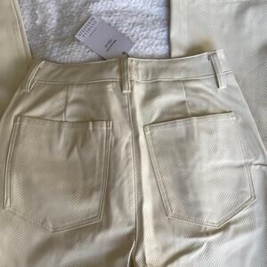 ivory leather, flare leg, mid-rise, soft lining, sleek fit, full length pants, minimalistic, luxury vibe, trendy leather, chic style