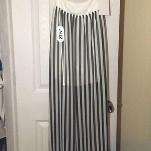 Ivory lacy top with a black & ivory stripes. Has a slit on both sides of dress up to miniature skirt underneath. Never worn. NWT. Size Small.