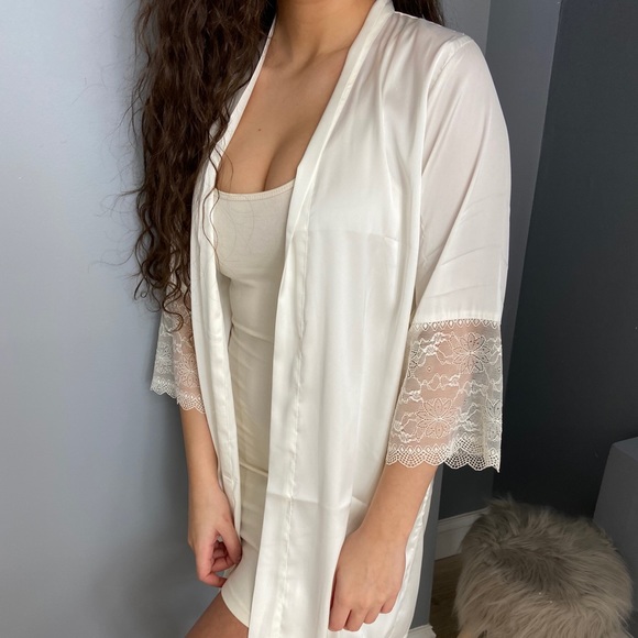 Ivory satin robe with lace detail size medium