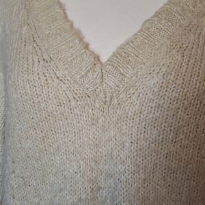 Ivory/cream v-neck sweater 27" length. Pet and smoke-free home. Great condition.