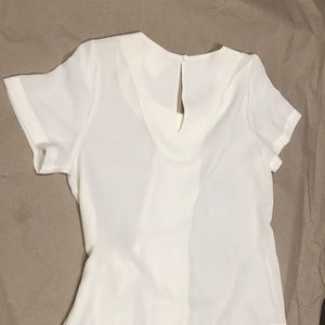 Beautiful ivory top with a side tie. Back has a single ivory button closure. 100% polyester.