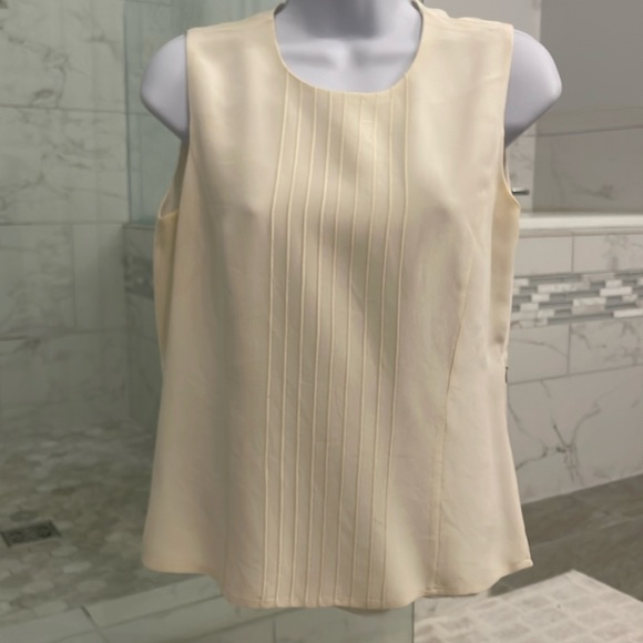 Lovely ivory-colored silk sleeveless top. Fully lined. Side zip for easy slip-on.
