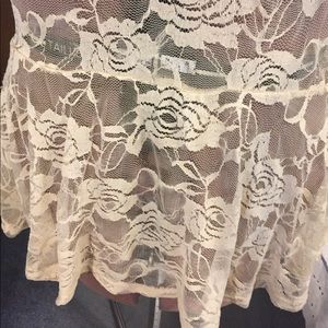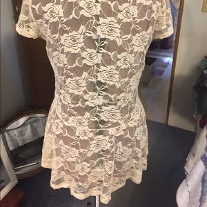 🌹Beautiful high low ivory lace tunic. I bought it but never wore it . In new condition 🙂I think it is so beautiful. I didn't want to wear it and mess it up. I just collect clothes, some I wear and some I just adore.🌹