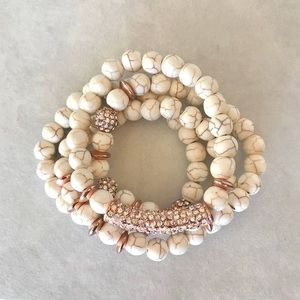 This beautiful stack comes with 4 bracelets. They are stretchy with rose gold pave beads mixed in. GORGEOUS