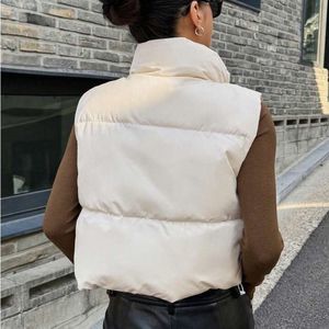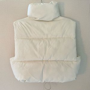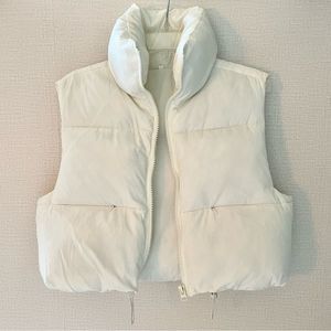 Ivory Boxy Puffer Vest, Medium, Polyester Fill, Zip Front, Drawstring, P…