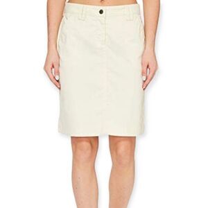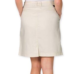 NEW women's beige skirt by Jack Wolfskin. A low rise, pockets, back slit, metro functional fit flare above knee pencil skirt. Refresh your style! On point from plane to city streets. Regular fit sits below hips with a classic pencil skirt design. Soft organic cotton blend features wind-resistant Function 65 Stretch, allows garment to move with you for comfort. Featuring belt loop waist, zip fly, button closure. Slant hand pockets, Straight hem back slit.