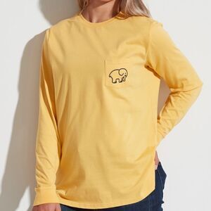 Ivory Ella Yellow Striped Elephant Graphic Long Sleeve Tee Top Small