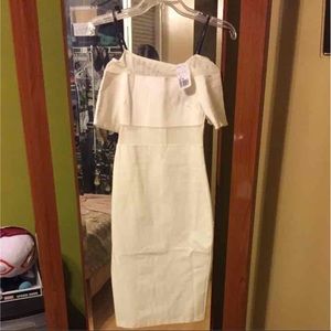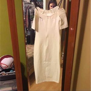 An ivory mesh accented choker bodycon dress says small but fits tighter so probably XS